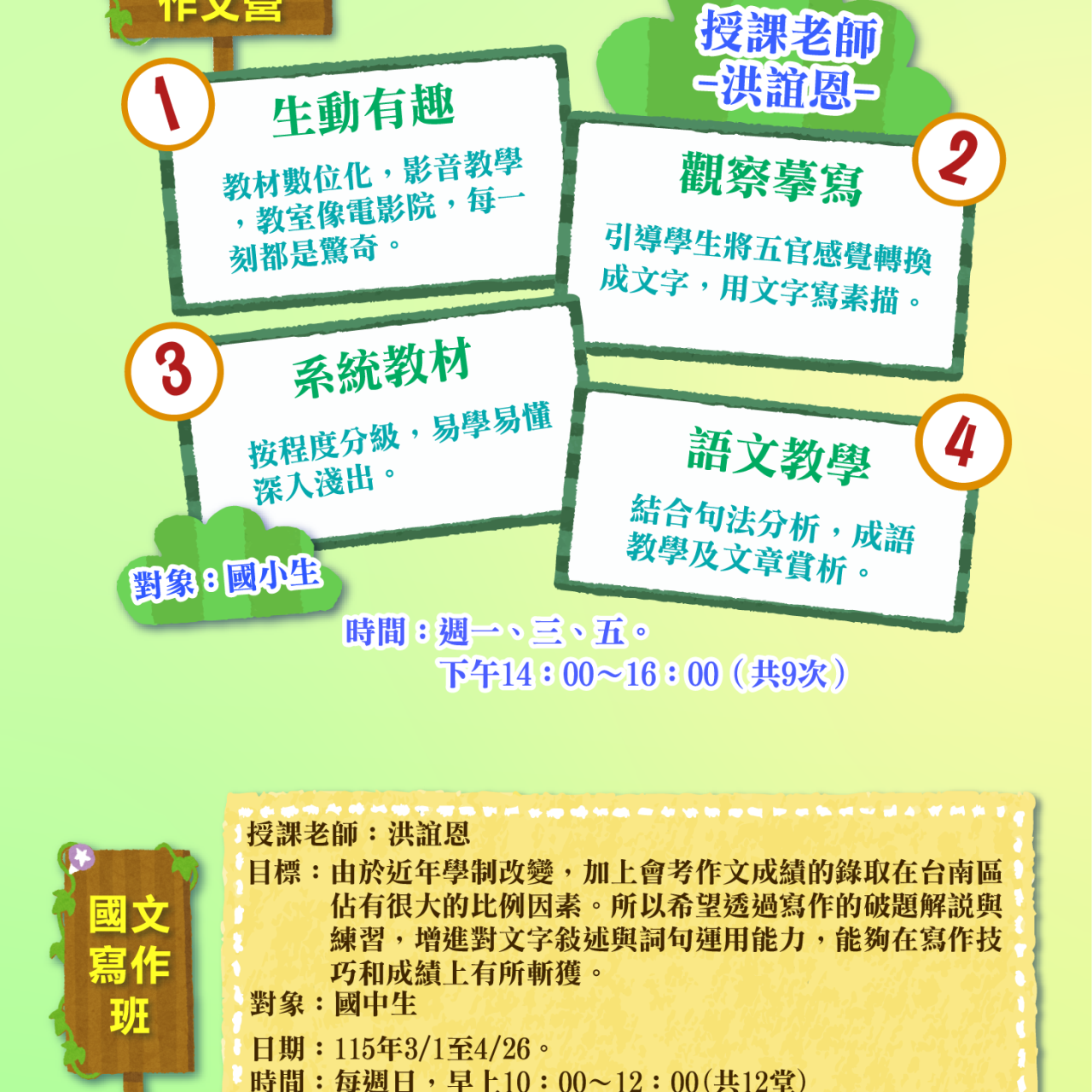 各年級課程熱烈招生中!!【請點我】